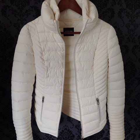 GUESS Pitkä takki naisille, koko XS. Takki on beigen värinen ja valmistettu polyesteristä. Mallina pitkä takki, jossa vyötäröllä vyö. Takissa on kaksirivinen nappikiinnitys ja koristekuvioita sisäpuolella. Takissa on upea lovitettu kaulus, ja takki on materiaaliltaan villasekoitetta (10%villa, 90% polyesteri).