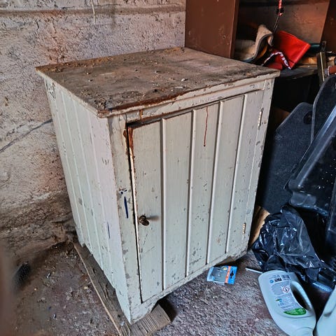 Myydään vanha kaappi. 60 luku. Pieni pala puuttuu oven alakulmasta, näkyy kuvassa. Toista ovea sisäpuolelta korjattu muutamalla naulalla, puuttuu sisäpuolen "kehykset". Joitain jälkiä. Tarjoa vapaasti.