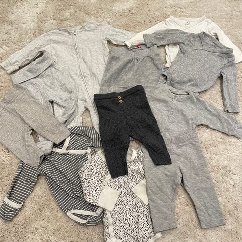 Vauvan harmaansävyinen vaatepaketti. Koot 50-56