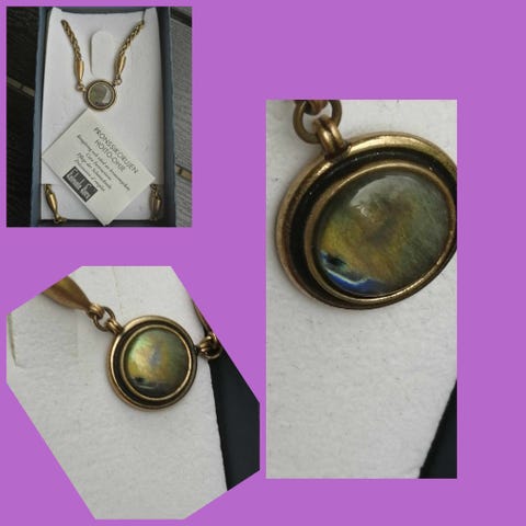 Kuva 4. Kuukiven koru, Kaisaleena Mäkelä v.1995 , kaulakoru ketju 60cm /rintakoruneula.