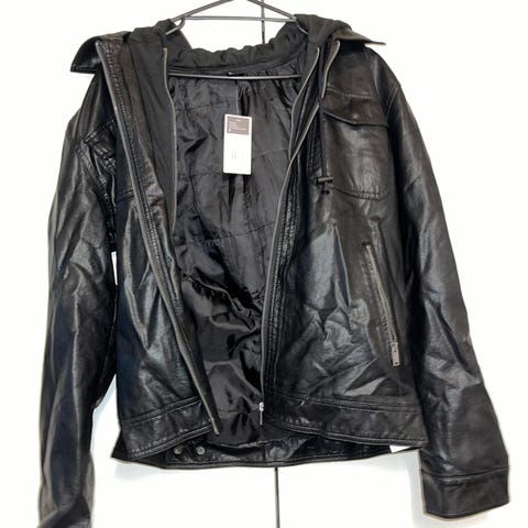 Miesten ihana musta keinonahkatakki. Uusi ja käyttämätön. Koko M. Kaikai n 52cm, pituus n 69,5cm.