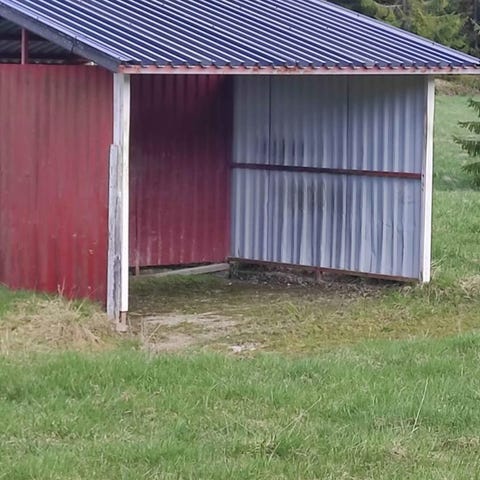 Käytöstä vapautunut katos. Katto 335cm ja 390 cm, korkeus korkeimmillaan 230 cm matalimmalta 200 cm nämä ulkomitat.