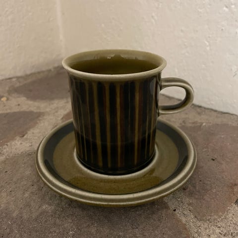 Arabia24-h kahvikuppi ja lautaset sininen keramiikka