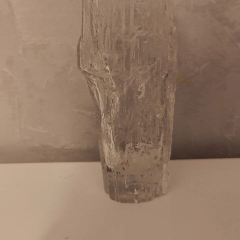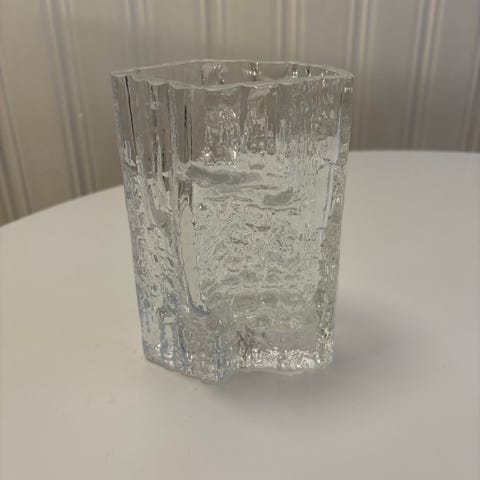 Tapio Wirkkalan Iittalalle suunnittelema Pinus maljakko. Korkeus n. 16 cm ja leveys enimmillään n. 11 cm. Suuaukon reunassa yksi kolhu. Näkyy kuvissa 5 ja 6.