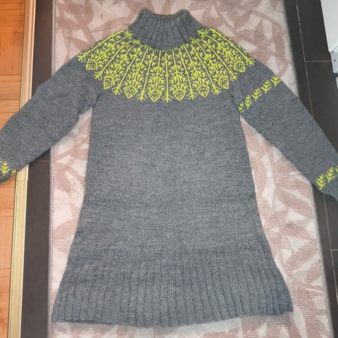 Käytetty itsekudottu villapaita Nalle langasta. Vihreä väri toistuu kuvassa hieman liian tummana. Harrastelijan tekemä. Koko reilu XL. Lisään mitat piakkoin. Hinta 35
