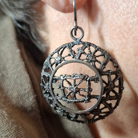 Vintage Pentti Sarpaneva pronssi korvakoru jossa ajanpatinaa saattaa olla