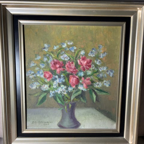 Taulu kukkakuvalla kehystetty