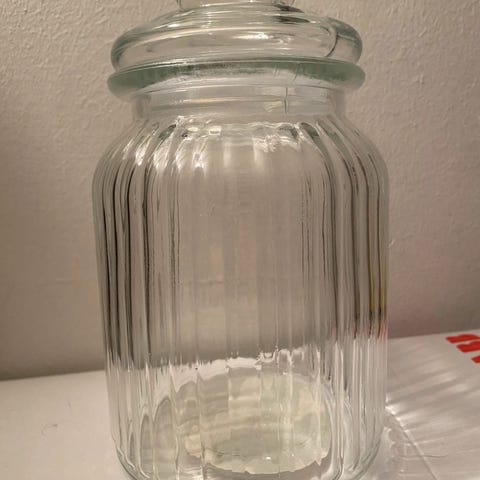 Vihreä lasipurkki, korkeus kannen kanssa 19,5cm. Vain nouto.