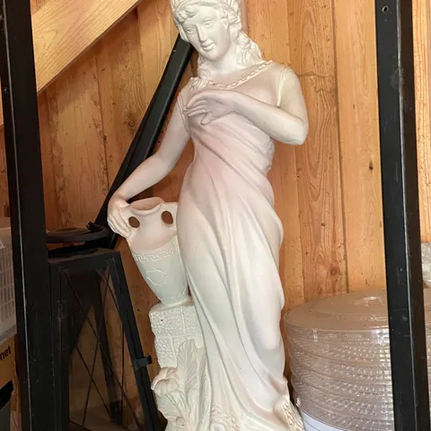 Kipsipatsas naisfiguuri Nanon. Korkeus 27 cm, paino 1070 g. Pieni lohkeama alaosassa.