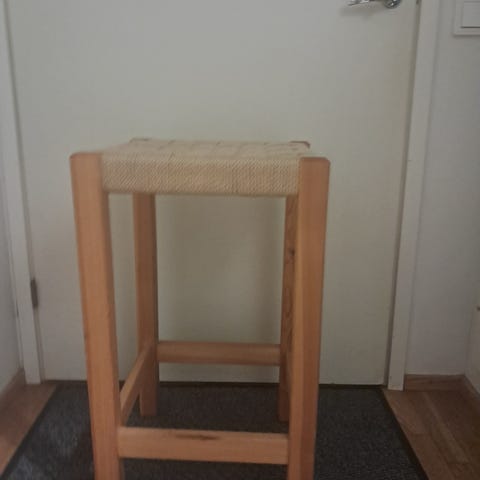 Baarijakkara, istuinverhoilu siisti ja ehjä.Korkeus 86cm.