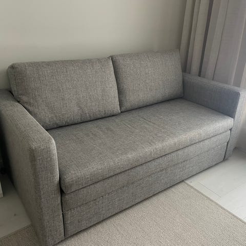 Myydään noin vuoden vanha vieraspetinä toiminut Jyskin NEJEDE vuodesohva. Sohvassa ei ole mitään käytönjälkiä tms, sen kanssa on käytetty petauspatjaa. Levitettynä vuoteena sohvan mitat ovat 107x191 cm. Kangas on vaaleanharmaa. Myydään muuton alta pois, ei mahdu seuraavaan kotiin. Ovh 250€.
