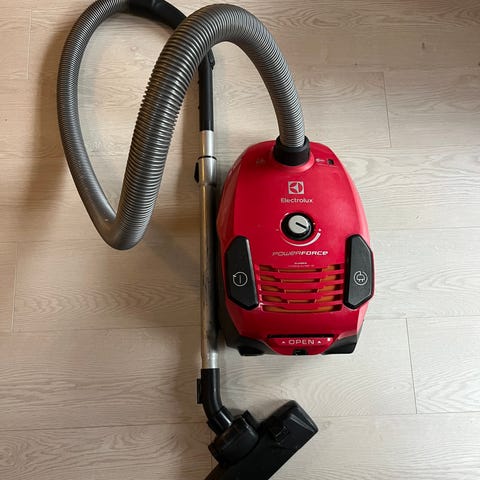 Electrolux PowerForce imuri laajoilla lisävarusteilla. Mukaan muutama uusi pölypussi, uusi suodatin ja motorisoitu lattiasuulake pyörivällä harjaspäällä.