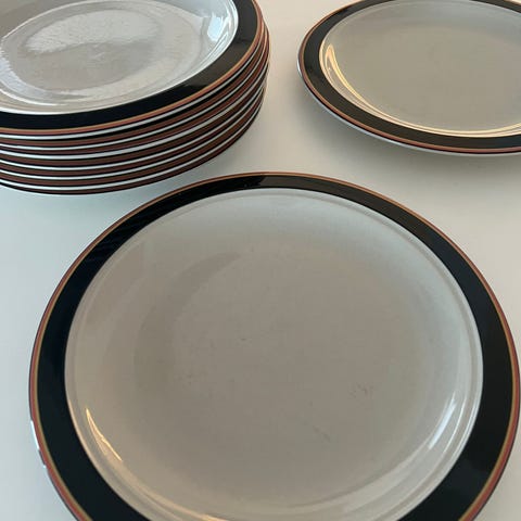 12 isompaa lautasta, kahdeksan pientä lautasta ja kaksi kahvikuppia. Myydään yhdessä.