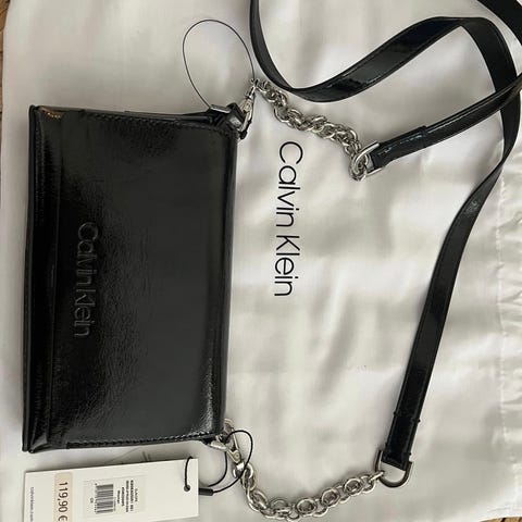 Calvin Klein musta kiiltävä olkalaukku