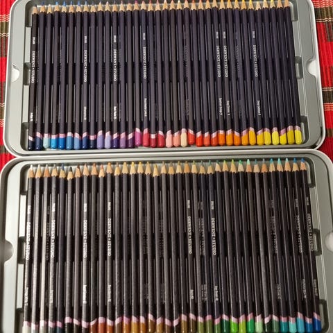laadukkaat Derwent Watercolour pencils-värikynät peltirasiassa. 72 kynän lajitelmassa kaikki sarjan sävyt.