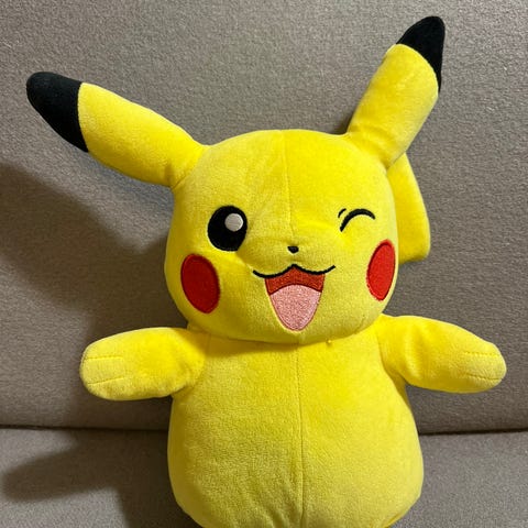 Pokemonin pehmo Pikachu. Valmistaja Tomy. Väri vaaleankeltainen. Korkeus noin 25cm. Pesty hienopesussa ennen myyntiin laittoa. Mielestäni ihan hyvässä leikityssä kunnossa.