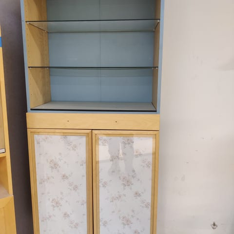 Ylosassa lasiivet alaosassa kaapit