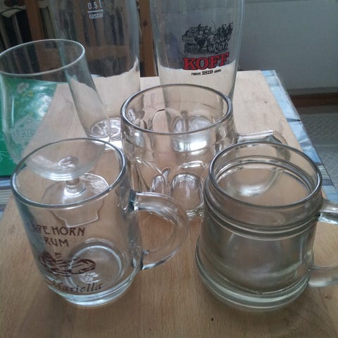 Kaikkien kunto hyvä. Riihimäen lasin tuopit käyttämättömiä.
