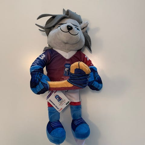 Hockey Bird - pehmolelun korkeus noin 10 cm (alaosasta tukkatupsun yläosaan), klipsin kanssa roikutettaessa noin 15 cm. Siisti kunto.