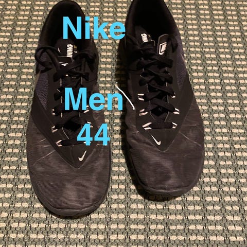 Nike MC trainer miesten treenikengät, koko 41/26cm. Eivät sovi omaan jalkaan hyvin, melko kapea lesti on. Eivät uudelle häpeä kunnoltaan. Sukasta kantapään kohdalla toisella kengässä hieman nukkaa, ei hajuhaittaa hiestä.