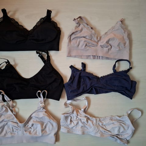 Myydään uudet käyttämättä jääneet M&S kaarituettomat imetysliivit 2kpl. Napakat, tukee hyvin. Värit musta/kuvioitu ja luonnonvaaleat.