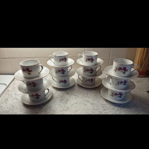 Kukka aiheinen Paracon kahvikuppi setti, jossa 3 osaa eli kuppi, tassi ja leivoslautanen. Vanhaa luuposliinia. Uudenveroisessa kunnossa kultauksiaan myöden.