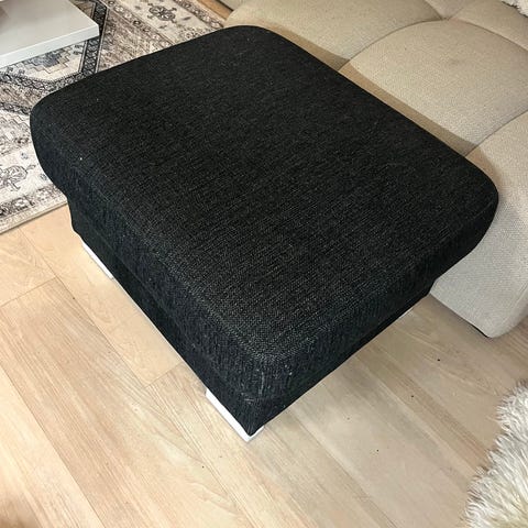 Myydään kuvan näppäränkokoinen musta rahi. Siistissä kunnossa. Ruskeat irrotettavat puiset jalat.