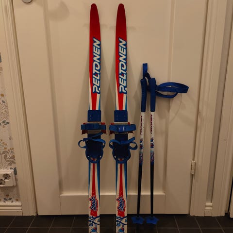 Siistikuntoinen Peltonen 100cm suksisetti. Monon reuna varresta vähän kulunut mutta ei menoa haittaa. Monon sisämitta n.17cm