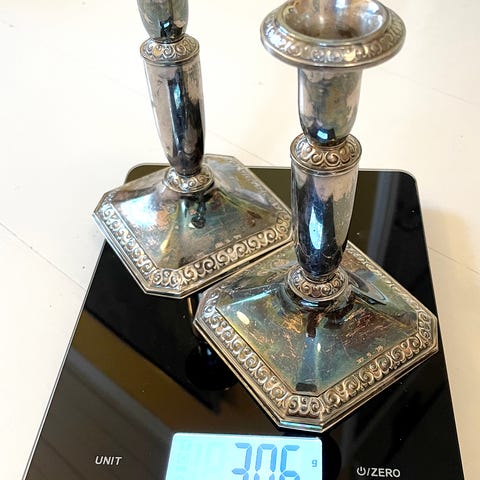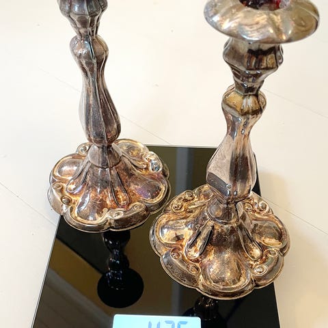 Hopeiset kynttilänjalkapari