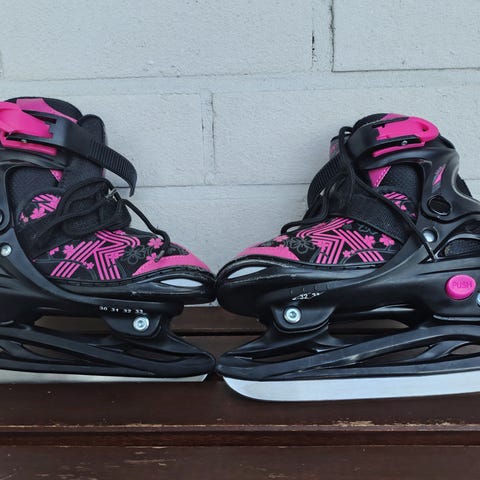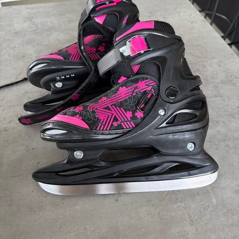 Roces lasten luistimet, koko säädettävä 30-33. Värit musta ja pinkki. Soveltuvat muun luistelun harrastamiseen.