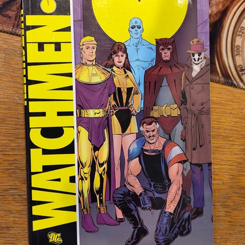 - Ei ihan, mutta melkein absolute kokoinen versio Watchmenista. Tämähän on siis sama tarina, mutta ilman väritystä. Tässä siis piirtäjän alkuperäinen ulkoasu ennen kun sitten värittäjät pääsivät toteuttamaan oman visionsa. Tilattu uutena, luettu kerran ja säilötty sitten varastossa. Kunto erittäin hyvä.