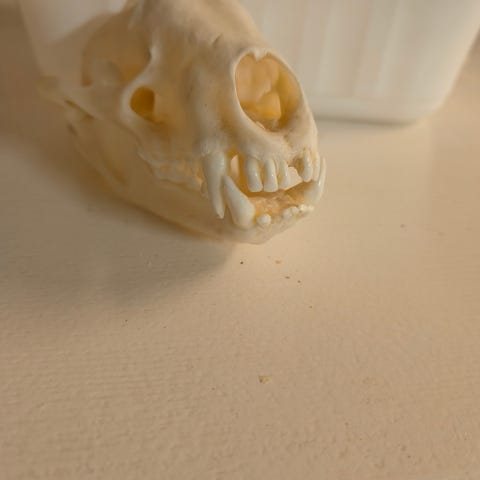 Pieni majavan kallo mitta suhteen näkee tulitikku askista. Ehjä ja hajuton.