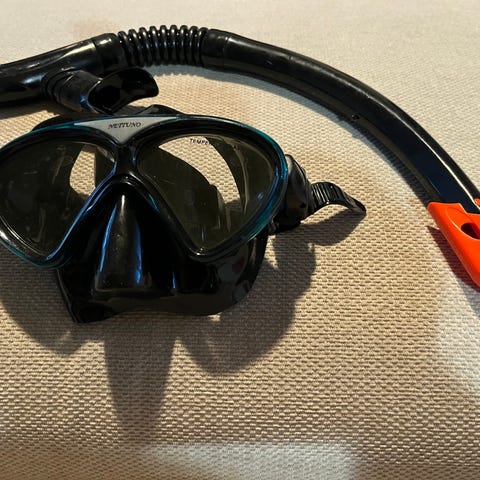 Snorklaussetti. Varusteet on suunniteltu sukellukseen ja vedenalaiseen käyttöön.