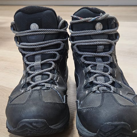 Tarkka malli on: Merrell Vego Mid Leather WTPF M. Ostettu Intersportista, netistä tarkemmat tiedot.