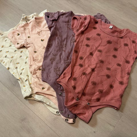 Hyvässa kunnossa olevat bodyt 9 kpl.. Lyhythihaiset 5kpl, pitkähihaiset 4kpl. Eläimetön ja savuton koti.