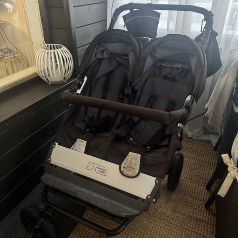Erittäin paljon käytössä olleet tuplarattaat, merkkiä Mountain Buggy duet.
