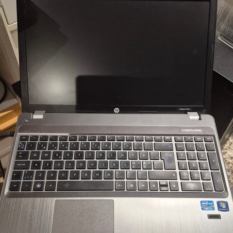 Näytön ja saranan välissä muoviosat haljenneet. Paikattu liimalla.