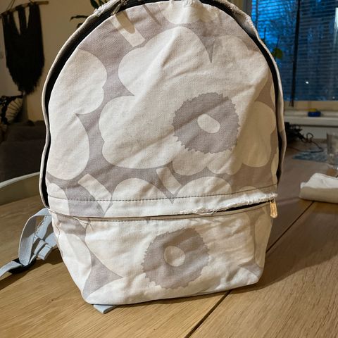 Paksusta puuvillamarkiisista valmistettu Marimekon Enni unikko reppu. Jäänyt itsellä todella vähäiselle käytölle, joten reppu on erittäin siistissä ja hyvässä kunnossa.