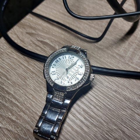 O.N.E. rannekello. Kellotaulussa 5 vapaasti liikkuvaa kirkasta kiveä.