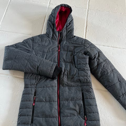 Ohuehko toppatakki. Koko 176. Ei huppua, ripustuslenkin toinen pää irronnut ja pieni melko huomaamaton tahra.