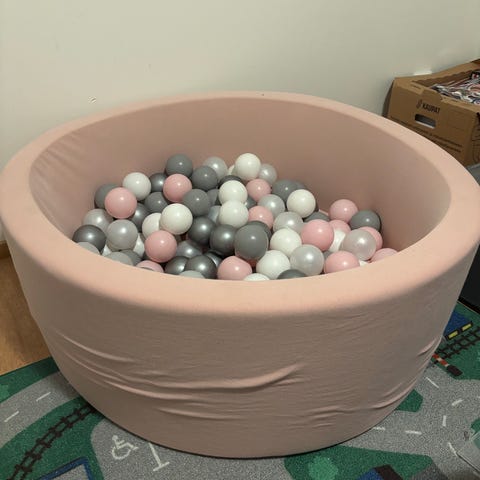 Ostetaan vaaleanpunainen pallomeri palloineen.