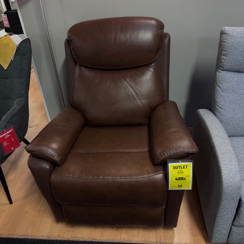 Mustanruskeasävyinen, nahkainen nojatuoli 2 kpl metallijalustalla