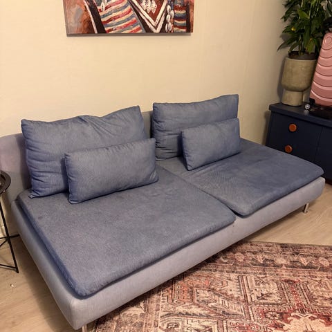 Myydän ikean söderhamn valkoinen sohva, yhdistetty kahdesta palasta eli voi pitää myös erillään. Ostettu viime kesänä, ei näkyviä tahroja yms. Nouto leppävaarasta vermonniitystä.