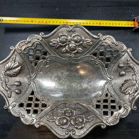 Patinoitunut hopeoitu tarjoiluastia
