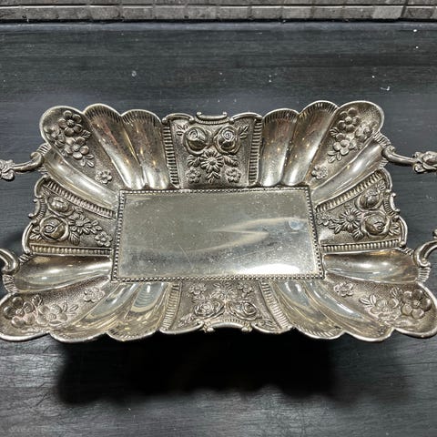 Patinoitunut hopeoitu tarjoiluastia/tarjotin/ sisustusesine.