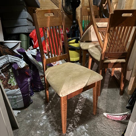 Myydään muuton tieltä 4 kpl hyvässä kunnossa olevia pinnatuoleja. Käytön jäljet kahdessa viimeisessä kuvassa. Mukaan pöytä, jonka tasossa käytön jälkiä.