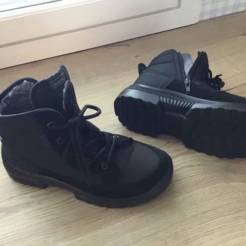 Kuoma talvikengät koossa 38, väriltään mustat. Kengissä on lämmin vuori ja pitävä pohja, soveltuvat käytettäväksi talviolosuhteissa.postitus onnistuu