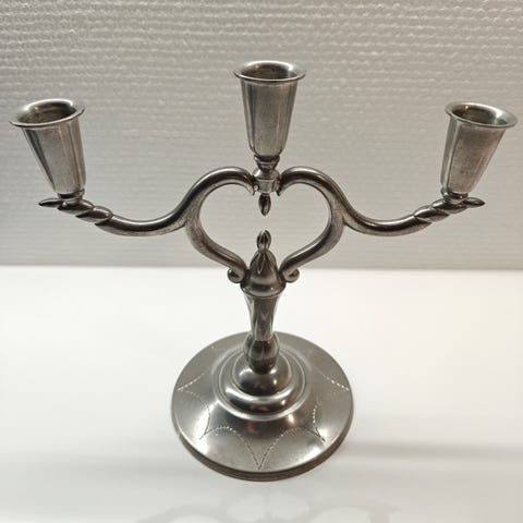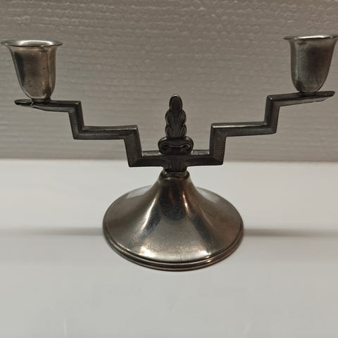 Myydään tanskalainen art deco -henkinen Just Andersen tinakynttilänjalka 20-luvulta.