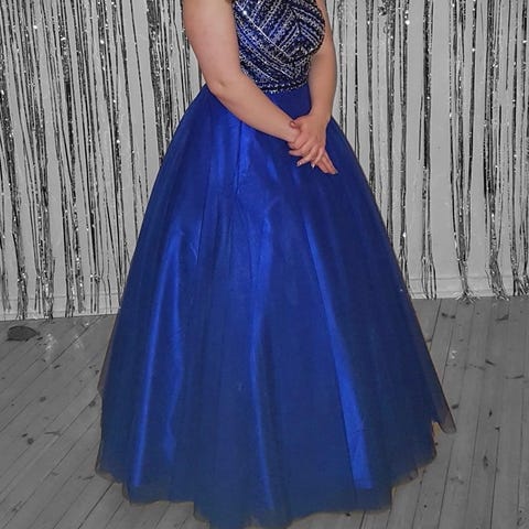 Käsintehty Mecco vanhojentanssimekko/iltapuku/tanssimekko koko n 38/40 eli vastaa n. M/L. Mekko on takaa säädettävissä eli menee monen kokoiselle. Malli on 165 cm, mutta hieman liian pitkä eli menee myös 170 cm pitkälle. Muutama strassi voi puuttua, mutta yleisilmeeltään muutoin hyväkuntoinen.