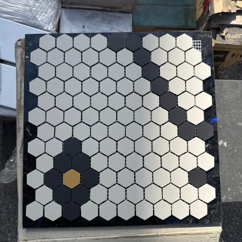 Matta harmaa mosaiikkilaatta, koko 5x5 cm. Soveltuu seinä- ja lattiapintoihin.